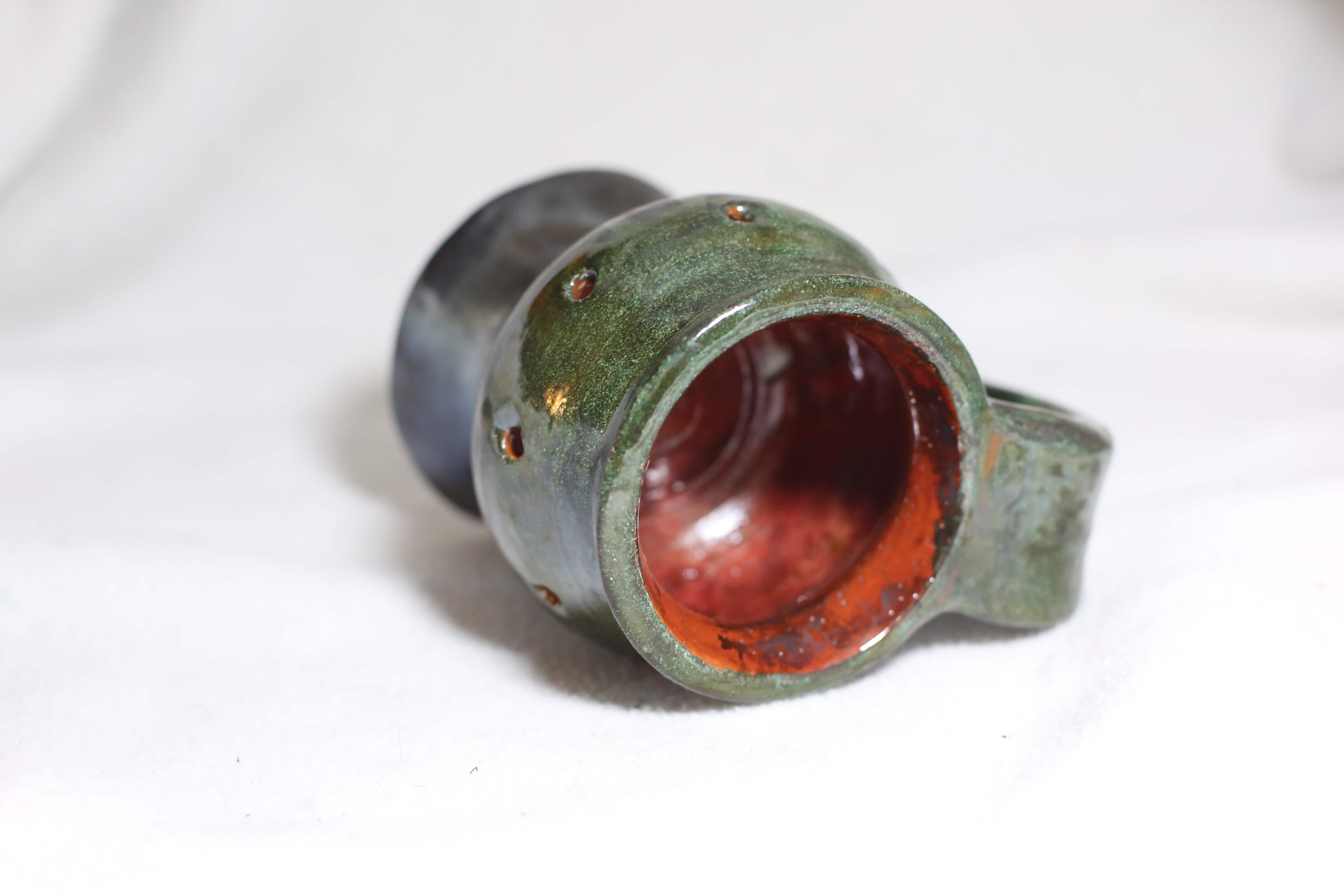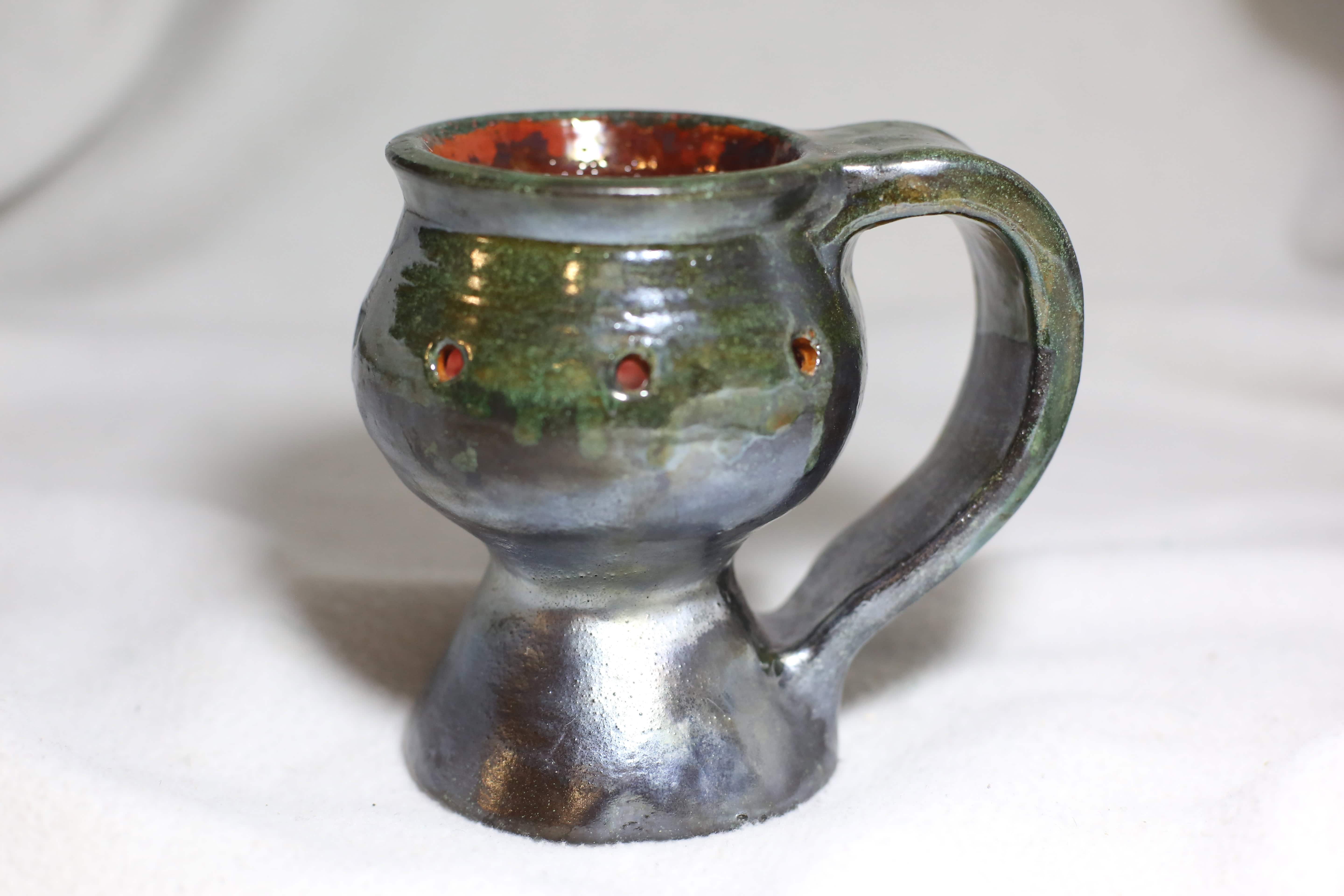 Medium Dark Green Clay Burner Handpainted-Pottery Dotted Design